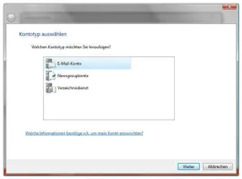 Markiere die Option E-Mail-Konto und klicke anschließend auf Weiter.